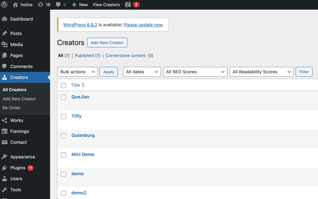- 实现自定义模块(Creators, Work)在 WordPress 后台更新;